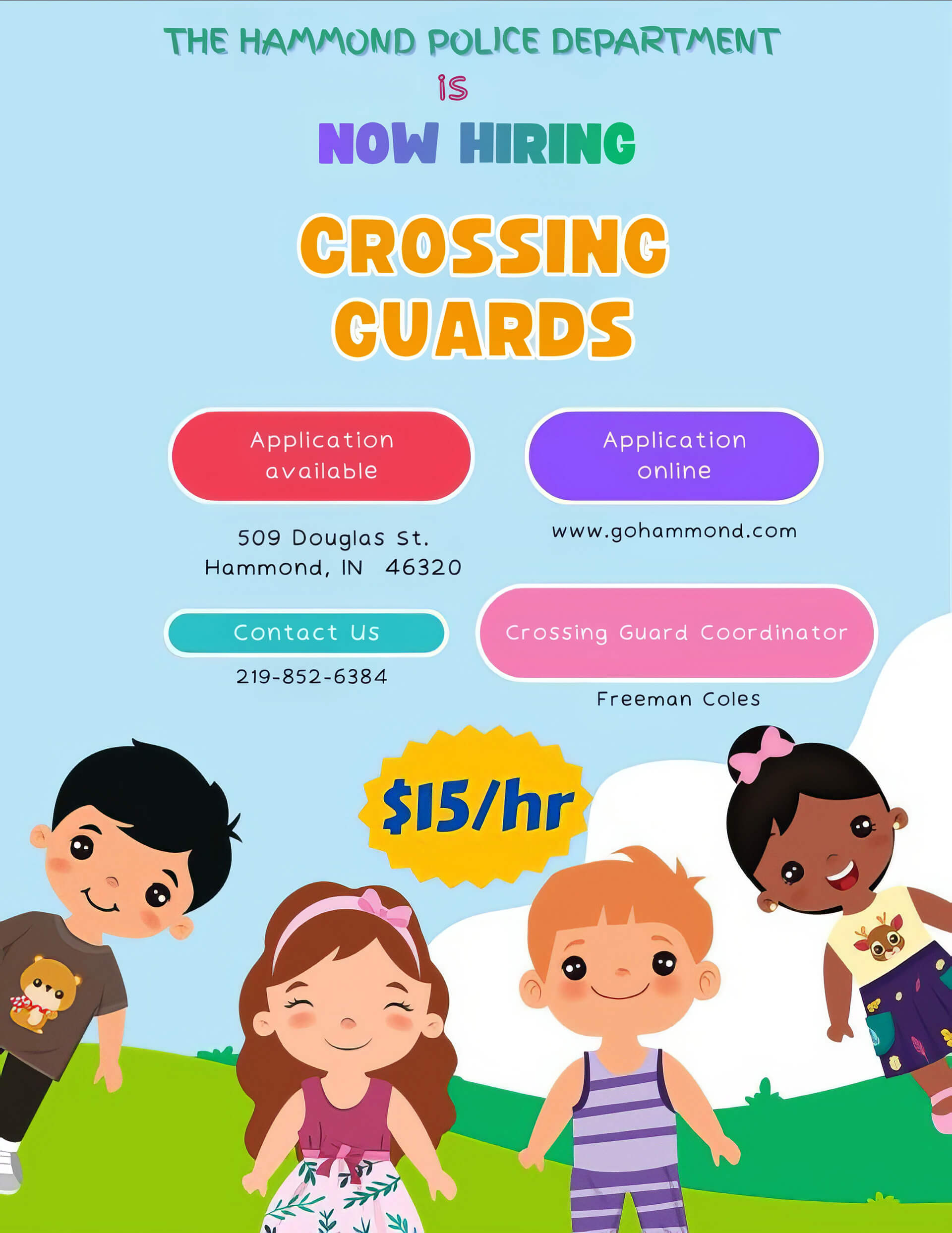 Earn $15/hour! Applications are available online or at the Hammond Police Department (509 Douglas Street).